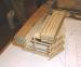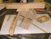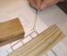 Make sure to use a waterproof glue suitable to your climate. If you can get waxed paper in your area, for frame elements, we dip the ends in glue and put them in place on the wax paper over the drawing. The new waxed paper we get has little wax, and works great as the glue sticks slightly to it making it stay in place. It peals off well after the glue is set, but leaves glue that might have to be trimmed later for fit with other components. As with all glues, excess is best cleaned up before it sets. If you will be doing a clear finish, we have found that small glue mistakes don't show if clear setting glue is used, and Thompson's clear water seal is used. Still it is best to clean up, especially areas where a hardened glob interferes with further construction. (Easier to remove a soft lump than a hard glob)