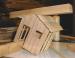 Attaching the first roof boards using a wooden clothes pin as a clamp. Leave