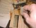 the 1x4 door trim. Again, the backside of the board was buttered with glue